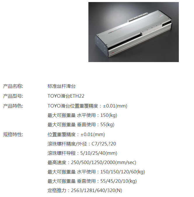 TOYO標(biāo)準(zhǔn)絲桿滑臺(tái)ETH22