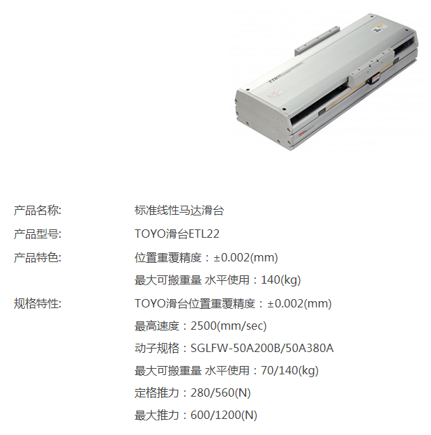 TOYO標(biāo)準(zhǔn)線性馬達(dá)滑臺ETL22