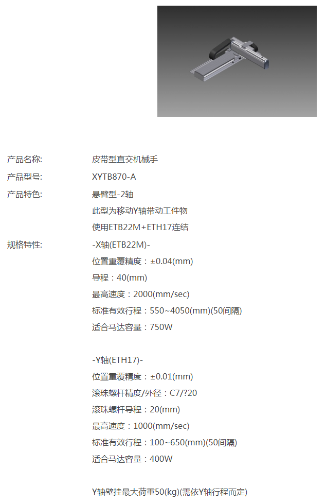 TOYO皮帶型直交機(jī)械手XYTB870-A